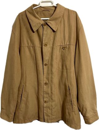 Cazadora de mujer de color marrón claro de pana con forro interior de borreguito blanco que está en buen estado. No tiene roturas, lo que sí tiene es el desgaste del uso. Su forro mantiene la temperatura para no pasar frío, ideal para el invierno. - Cierre de botones. - Dos bolsillos con botones en el pecho. - Dos bolsillos a los laterales. - Puños con botones. - Cuello con borreguito. - Forro con borreguito.