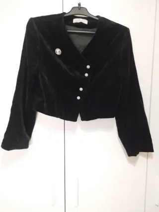 Elegante chaqueta corta de terciopelo. - Diseño cruzado con botones. - Detalle de broche en solapa, se puede quitar y poner. - Ideal para crear tu propia moda, utilizado para cosplay.