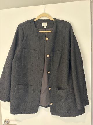 Chaqueta de H&M con un diseño texturizado y elegante. - Cuello redondo. - Cierre de botones dorados. - Bolsillos frontales. - Forro interior.