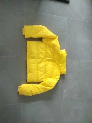 Chaqueta acolchada de color amarillo brillante, ideal para abrigarse con estilo. - Cierre de cremallera frontal. - Dos bolsillos laterales con cremallera. - Cuello alto para mayor protección. - Puños elásticos en las mangas.