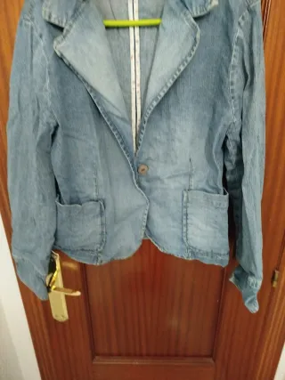Chaqueta de corte moderno con un diseño versátil. - Dos bolsillos frontales con solapa. - Cierre de botones. - Cuello clásico. Es verde militar, muy bonita y combinable con cualquier prenda. Es vaquera, Me costó 30e , nunca me la llegué a poner.
