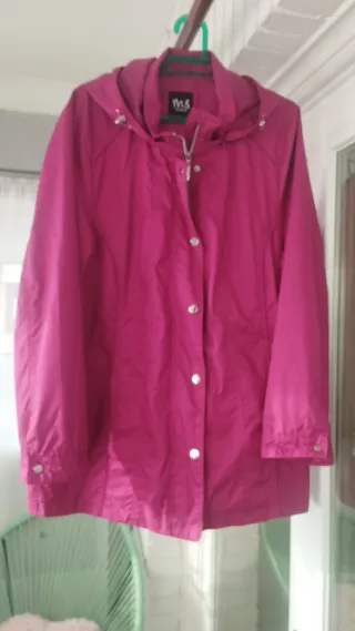 Chaqueta multiusos de color fresa, ideal para cualquier ocasión. Cuenta con capucha para mayor protección. Talla XL amplia súper alegre - Cierre de cremallera y botones. - Diseño ligero y práctico.