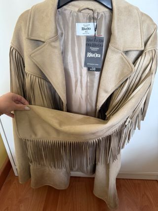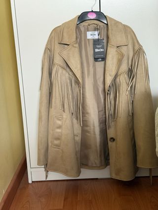Chaqueta de efecto ante con flecos, un diseño llamativo y moderno. - Cierre de botón. - Bolsillos delanteros.