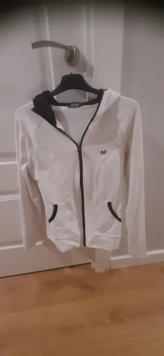 Chaqueta deportiva con capucha. - Cierre de cremallera. - Bolsillos frontales. - Detalle de logo en el pecho. - Da poca talla, entre s/m