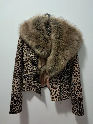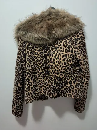 Chaqueta con estampado de leopardo y un llamativo cuello de pelo. - Diseño de cremallera. - Bolsillos con cremallera. - Forro interior.