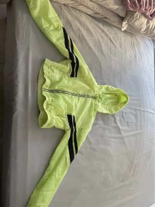 Chaqueta de color verde fluorescente con detalles en negro. - Diseño deportivo. - Cremallera frontal. - Capucha. - Rayas laterales en las mangas.