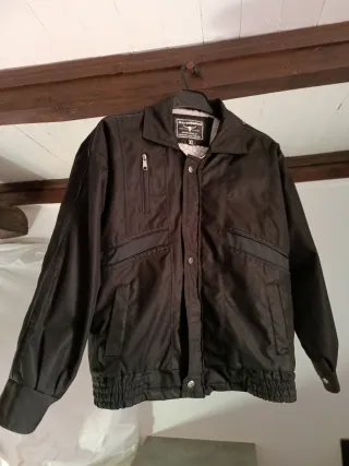 Chaqueta con tela exterior de algodón y forro interior de borreguito. - Cierre de cremallera y botones. - Bolsillos frontales y uno en el interior. - Decorada con cremayeras. - Puños cerrados con botones y cintura elástica. - Es un XL pequeño, equivalente a L.