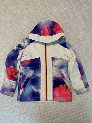 Chaqueta de nieve para niña de la marca O'Neill con un diseño vibrante y moderno. Talla Eu 116 - Estampado abstracto en tonos azules, rosas y blancos. - Capucha integrada. - Cremallera frontal. - Bolsillos laterales con cremallera.