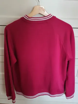Cazadora bomber de estilo casual. - Cierre de cremallera. - Cuello redondo. - Puños y bajo elásticos. - Tejido fluido y sedoso. - Forro interior. - Talla XS, pero también vale para una S. Usada sólo una vez, porque me queda grande.