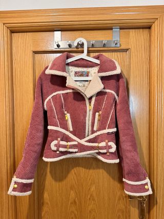 Chaqueta pana forro borreguito rosa Talla S