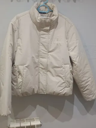 Chaqueta Calvin Klein Jeans en color beige. Presenta un diseño moderno y elegante. - Logo de Calvin Klein Jeans estampado. - Cierre de cremallera. - Bolsillos laterales.