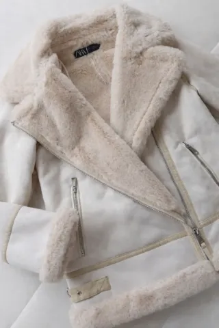 Chaqueta de Zara con un diseño moderno y cálido. - Cuello y detalles de pelo sintético. - Cinturón ajustable en la cintura. - Cierre de botones. - Puños con detalle de hebilla.