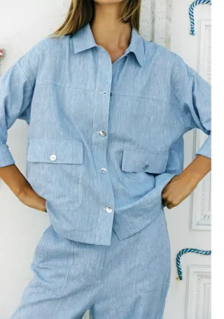 Chaqueta vaquera con un diseño moderno y atrevido. - Diseño de hombros abiertos. - Cierre de botones. - Dos bolsillos en la parte delantera con botón.