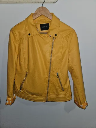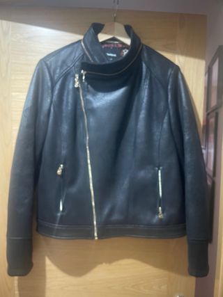 Cazadora de efecto piel cortita y entallada.se ha usado poco