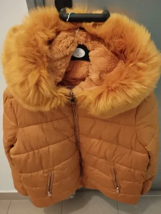 Cazadora acolchada con capucha de pelo sintético. - Talla 14 de niña (164cm) - Cierre de cremallera. - Bolsillos laterales. - Puños elásticos.