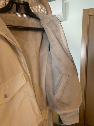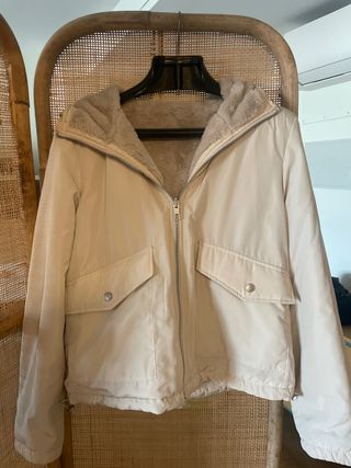 Chaqueta reversible de la marca Only. Un lado es de color beige y el otro gris. - Diseño con capucha. - Bolsillos frontales con botón. - Cierre de cremallera.