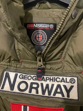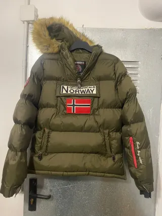 Chaqueta de Geographical Norway en color verde. Diseño acolchado con capucha y detalles en contraste. - Capucha con pelo sintético. - Bolsillo frontal tipo canguro. - Cierre de cremallera. - Parche de la bandera de Noruega en el pecho. - Logo de la marca en la manga.
