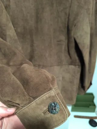 Chaqueta de ante con un diseño único y elegante. Perfecto para un look retro y o clásico. - Material: Ante - Color: Marrón - Cierre de botón Muy buena condición
