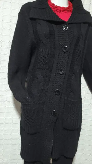 Chaqueta de punto, color negro, talla S-M Mide 86 cm de largo