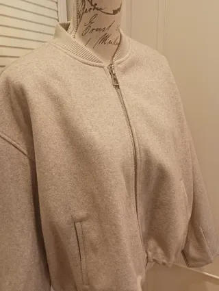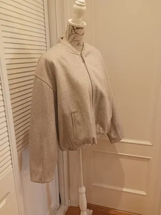 Chaqueta estilo bomber en color beig. En perfecto estado. Solo estrenada - Cierre de cremallera frontal. - Bolsillos laterales. - Puños y bajo elásticos.