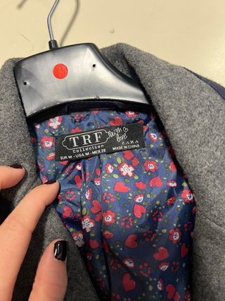 Elegante chaqueta de Zara con un diseño texturizado. - Cuello redondo con acabado deshilachado. - Cierre de botones frontales. - Bolsillos de parche con detalle en contraste. - Mangas largas.