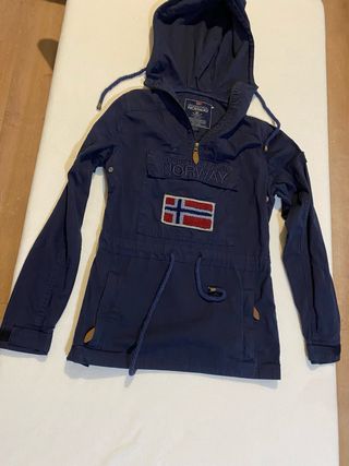 Chaqueta de estilo anorak con capucha y parche de la bandera de Noruega. - Cierre de cremallera parcial. - Bolsillo frontal tipo canguro. - Cordones ajustables en la capucha y en la cintura. - Puños ajustables.