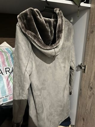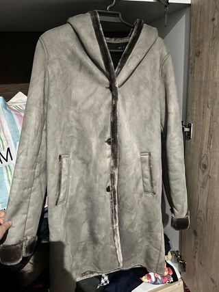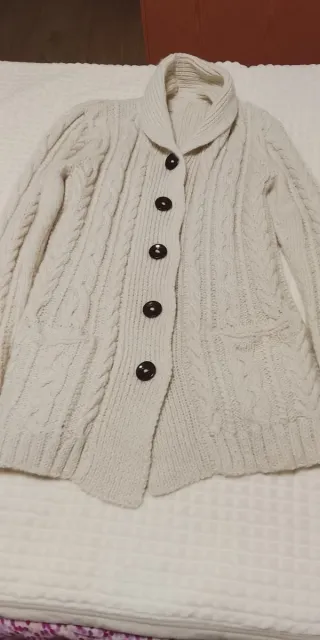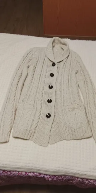 Chaqueta larga de punto con detalles de trenzas y capucha con pelo sintético. - Cierre de botones de madera y polipiel. - Diseño de trenzas. - Capucha con pelo sintético. Precio 8.50 euros no negociables ◾ No acepto ofertas ◾ Solo venta por envios ◾ Envio en menos de 24 horas después de su compra.