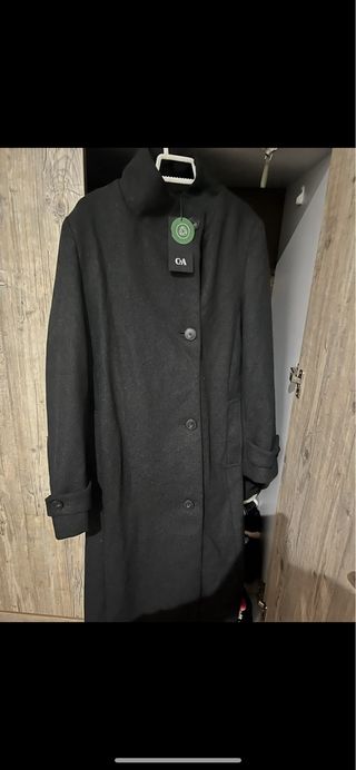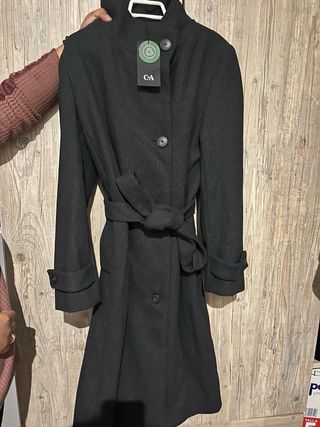 Elegante chaqueta negra de C&A con un cinturón de lazo para ajustar la cintura. - Diseño de cuello alto. - Cierre de botones. - Puños abotonados.