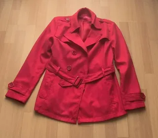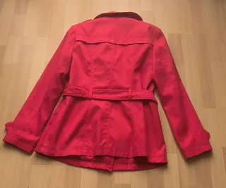 Chaqueta de estilo gabardina en color rojo, con detalles que le dan un toque moderno. - Doble botonadura. - Cinturón para ajustar. - Puños abotonados. - Bolsillos frontales. Talla 4 que será como una L. Chic & Jeune