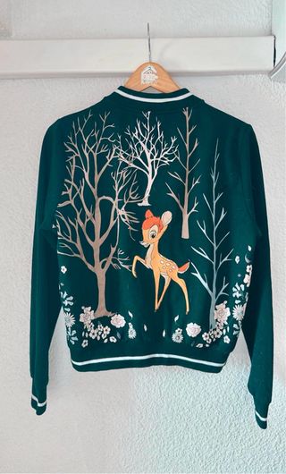 Sudadera / Chaqueta estilo Bomber de color negro con detalles bordados de Bambi (Disney) Una preciosidad de 2017 exclusiva de Primark! Usada para una sesión de fotos únicamente, por lo que esta Casi Nueva! A pesar de que indica talla 44, es de corte estrecho. Por lo que si tu talla es 34/36/38 te quedará ideal. Con una 40, un poco mas pegado. Todo depende del estilo que quieras. Pide fotos de medidas sin compromiso. SOLO ENVIO. PROTECCIÓN TOTAL! 💲Descuento en Lotes/Packs💲