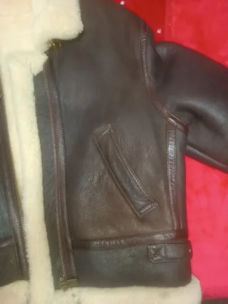 Chaqueta de piel con forro interior de borrego. - Cuello de borrego. - Cierre de cremallera. - Bolsillos frontales.