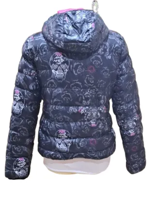 Chulísima chaqueta acolchada de calaveras mexicanas y rosas, tonos grises, negros y fucsia, diseño super original. Con capucha, impermeable, muy calentito. Hombros 46 cm, axilas 48, cintura 48, largo 60. Talla 44. ☠️☠️☠️ ENVÍO RÁPIDO en 24-48h ☠️☠️☠️ ☠️ Ropa lavada y en perfecto estado ☠️ Paquetes perfectamente protegidos con papel de embalaje ☠️ Regalito sorpresa en cada pedido 🚭 Casa sin humo Mira mi armario para más ropa y complementos rockeros con actitud! ❤️ ☠️☠️☠️☠️ #modarock #rock #rocknroll #metal #punkrock #rockabilly #secondhandfashion #pinup #oldschool #tattoos #goth #gothic #gothique #heavymetal