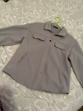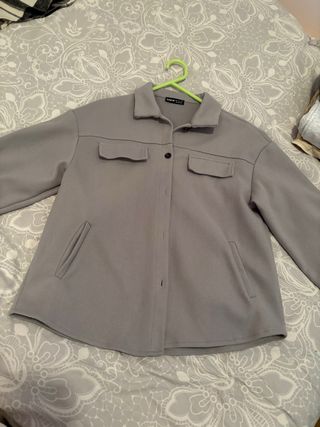 Chaqueta estilo sobrecamisa en color gris. - Diseño con cuello - Cierre de botones - Dos bolsillos en el pecho - Bolsillos laterales