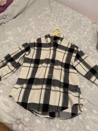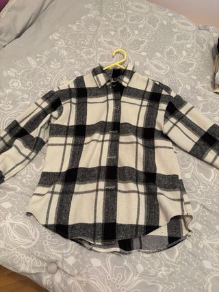 Chaqueta de Stradivarius con un diseño a cuadros llamativo. - Estilo camisero con cuello. - Cierre de botones. - Dos bolsillos en la parte delantera.
