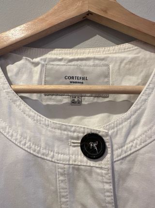 Chaqueta corta de la marca Cortefiel con un bonito forro interior estampado. Como una talla L - Diseño con cuello redondo. - Cierre de botones. - Dos bolsillos frontales con solapa.