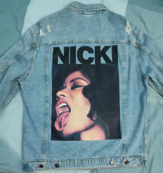 Chaqueta vaquera con estampado de Nicki Minaj. - H&M colaboración con Nicki Minaj. - Acabado desgastado con rotos.