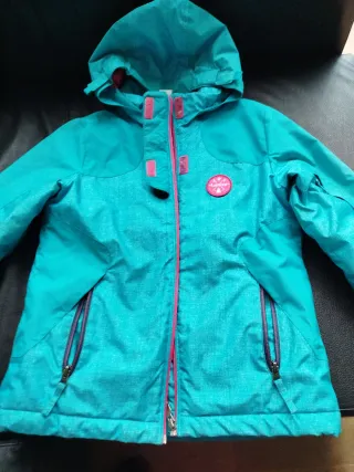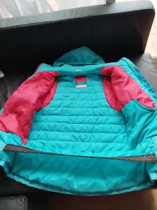 Chaqueta de esquí de la marca Wedze, perfecta para actividades al aire libre. En perfectas condiciones. - Diseño en color azul turquesa y detalles en rosa. - Cremallera frontal. - Bolsillos con cremallera.