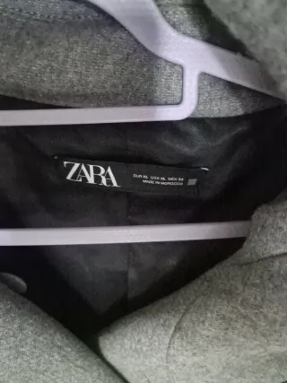 Chaqueta de la marca Zara en color gris. Presenta un diseño moderno y elegante. - Cuello amplio y envolvente. - Cierre cruzado con botones. - Bolsillos frontales con solapa.