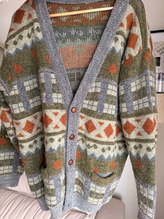 Chaqueta de lana Es una prenda de estilo retro. - Es grande, estilo OVERSIZE . - Bolsillos delanteros.