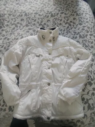 Chaqueta de nieve con un diseño moderno y funcional. - Cuello alto con cierre. - Bolsillos frontales con cremallera. - Puños ajustables. - Detalle de copo de nieve en la manga.Como nueva