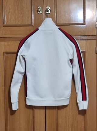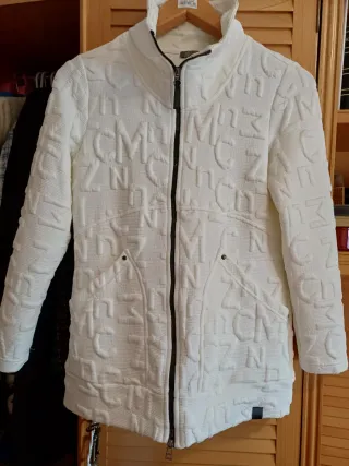 Chaqueta deportiva de color blanco con un diseño de letras en relieve. - Cierre de cremallera. - Bolsillos laterales. - Cuello alto.