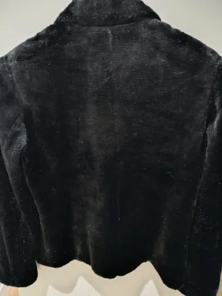 Elegante chaqueta de la marca VIDRIO. - Color negro. - Diseño entallado. - Cierre de dos botones. Bonito pantalón un poco acampanado y con el detalle del dobladillo en el bajo. Cremallera delantera y botón Es una talla 36 pero pequeña