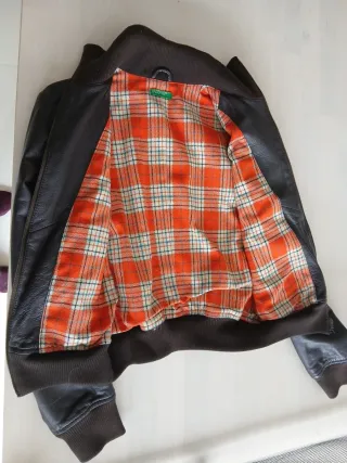 Chaqueta de cuero de la marca Benetton. - Color marrón. - Talla S (36/8).
