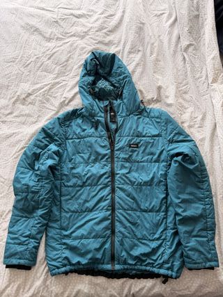Chaqueta Finisterre Sastruga en color turquesa, talla M. Precio nueva 100 euros. Usada muy poco, comprada hace muchos años. Se conserva en muy buen estado. Finisterre es una marca comprometida con el reciclaje y la ecología, diseña productos innovadores para surfistas de aguas frías de todo el mundo - Diseño acolchado. - Capucha integrada. - Cierre de cremallera frontal.