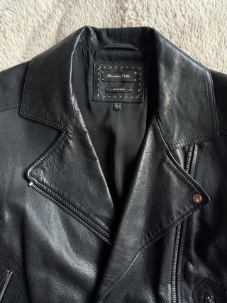 Chaqueta de piel auténtica de Massimo Dutti. - Diseño clásico de cuero. - Cremalleras plateadas. - Cuello solapa.