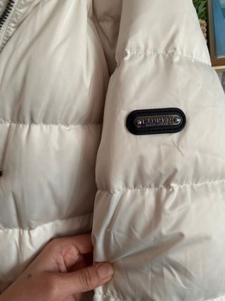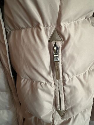 Chaqueta de la marca Ralph Lauren en color beige. Diseño acolchado con detalles. - Cierre de cremallera. - Bolsillo con cremallera. - Detalle de cuero en el tirador de la cremallera. Tiene un pequeño agujero por eso su precio