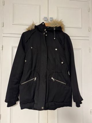 Chaqueta de invierno de Bershka, ideal para los días fríos. - Diseño moderno con capucha. - Gorro con pelo. - Cierre frontal con cremallera. - Bolsillos laterales con cremallera. - Cintura ajustable con cordón.