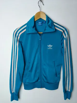 Chaqueta deportiva Adidas Originals Firebird para mujer. - Diseño clásico con las tres rayas icónicas en las mangas. - Logo de Adidas bordado en el pecho. - Cremallera frontal completa. - Cuello alto. - Puños y cintura elásticos. ©️ Artículo original. 🏷️ Talla en etiqueta: 36 EU (revisar medidas). 📏 MEDIDAS ↕️ 56 cms largo ↔️ 44 cms sisa ↕️ 71 cms largo de manga • Muy bien conservada 🔎 • Prenda lavada y planchada 🧽 • Celeste y blanco 🎨 • Poliéster 🔬 ✈️ Envíos rápidos y protegidos. ⚠️ No acepto devoluciones: todas las prendas de segunda mano pueden tener signos de uso.