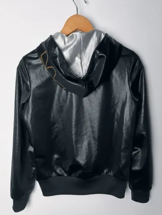 Chaqueta con capucha Adidas Originals Chile 62 con acabado brillante. - Diseño llamativo y moderno. - Detalles dorados. - Cremallera frontal completa. ©️ Artículo original. 🏷️ Talla en etiqueta: 38 (revisar medidas). 📏 MEDIDAS ↕️ 58 cms largo ↔️ 46 cms sisa ↕️ 70 cms largo de manga • Impecable 🔎 • Prenda lavada y planchada 🧽 • Negro efecto mojado 🎨 • Poliéster 🔬 ✈️ Envíos rápidos y protegidos. ⚠️ No acepto devoluciones: todas las prendas de segunda mano pueden tener signos de uso.