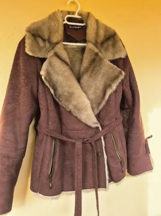 Chaqueta de invierno con un diseño elegante y cálido. - Cuello y forro interior de pelo sintético. - Cierre cruzado con botón. - Dos bolsillos frontales con cremallera. - Cinturón a juego. - Detalle de lazada en los puños.